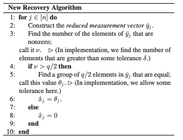 Proposed a novel super-fast non-iterative algorithm for the recovery of high-dimensional sparse signals in the “low complexity” regime. This algorithm is hundreds of times faster compared to basis pursuit using binary measurement matrices and Chirp matrices, and thousands of times faster than using Gaussian matrices.